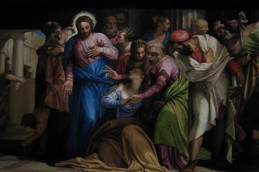 Today's Gospel offers a rare framework -- a story in a story. Most of the healing miracles are standalone encounters. One person approaches Jesus, demonstrates faith, and is healed. The evangelist tells the next story. This Gospel, however, is different. Jesus is on his way to heal one person, a young girl of twelve, and is interrupted on his journey by "a woman afflicted with hemorrhages." She bravely approaches Jesus in a crowd, despite being ritually unclean from her bleeding, and stretches out to touch his cloak. She is healed! Jesus meets her eye, confirms her faith, and continues on to resurrect the young girl.